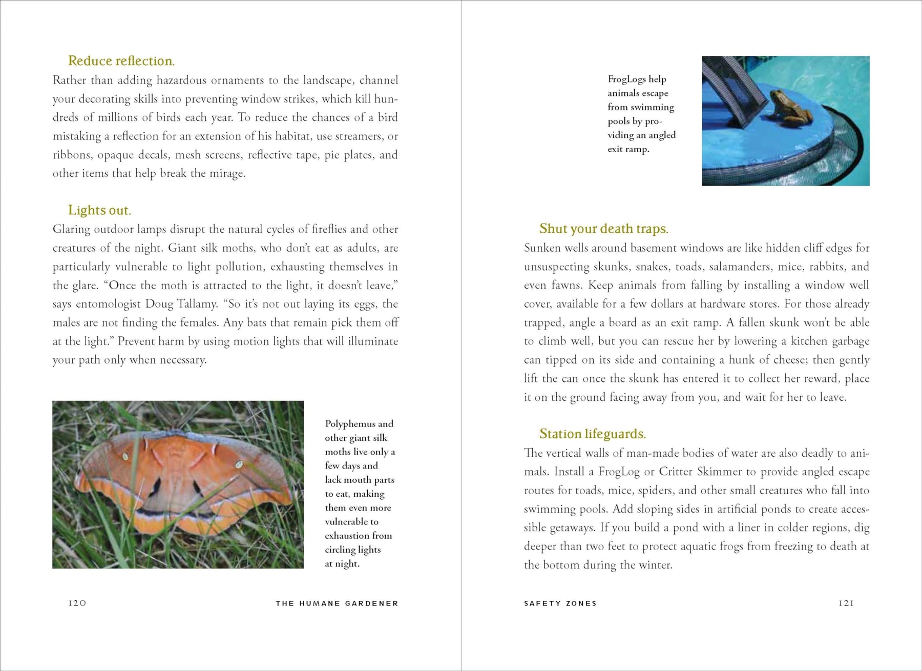 Chapters cover selecting native plants, providing nesting and shelter, creating safe zones for young animals, and strategies for coexisting with animals often seen as pests. Lawson pairs profiles of home gardeners with interviews from scientists and horticulturists.